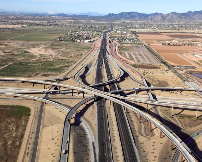 As a member of the Connect 202 Partners Team, AZTEC is helping to deliver the largest construction project in state history for the Arizona Department of Transportation. This PPP megaproject involves designing and constructing more than 22 miles of a new 8-lane freeway facility. AZTEC is one of the main designers, where we are leading a key project segment that involves designing a freeway to freeway system interchange. In addition to this design, we are providing structures, engineering, survey, utility locating and environmental compliance support for the entire corridor. As the last section of the Maricopa Association of Governments’ original regional transportation plan, the South Mountain Freeway will complete the Valley’s highway network.